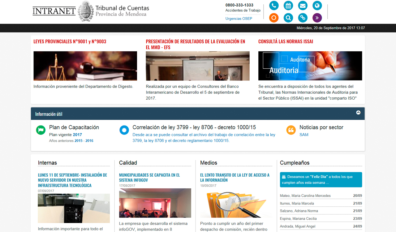 El Tribunal de Cuentas avanza en la incorporación Tecnologías de la Información en sus procesos, con objeto de: mejorar la calidad de servicios; favorecer el control oportuno, eficaz y eficiente; ayudar a la toma de decisiones en tiempo y forma; satisfacer las necesidades de información de orden interno/externo y producir economías en sus tareas. En post a estos lineamientos las principales metas alcanzadas durante el ejercicio 2.017 por el Departamento de Sistemas y Comunicaciones son: